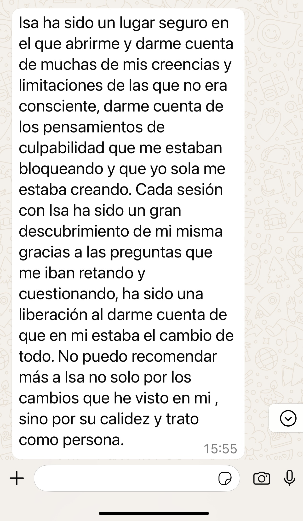 Si buscas a alguien que te entienda, te sostenga y te ayude a avanzar con claridad y confianza, Isa es esa persona.